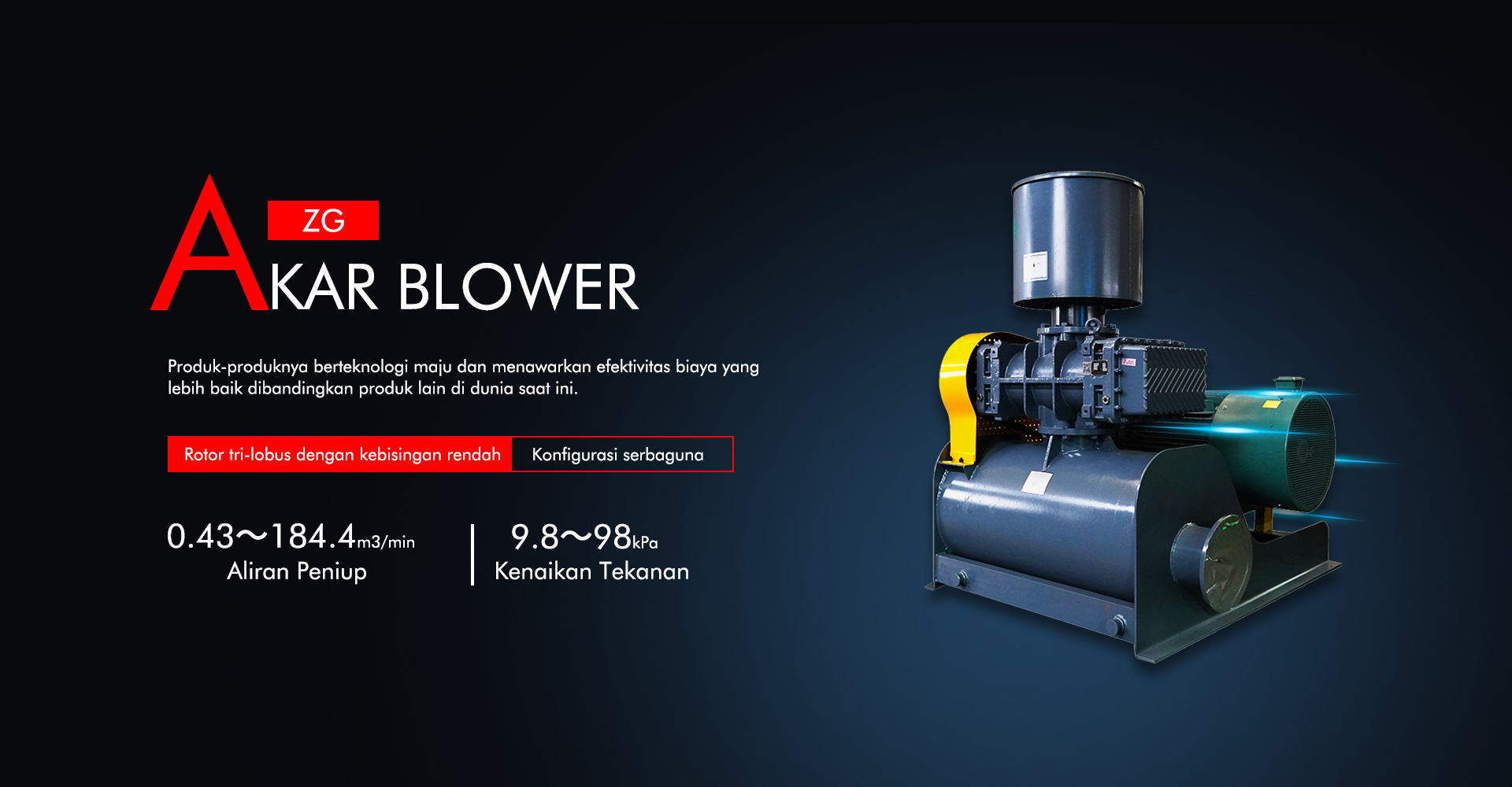 Blower/pompa vakum RR Roots dibuat dengan teknologi yang diperkenalkan dari Jepang.